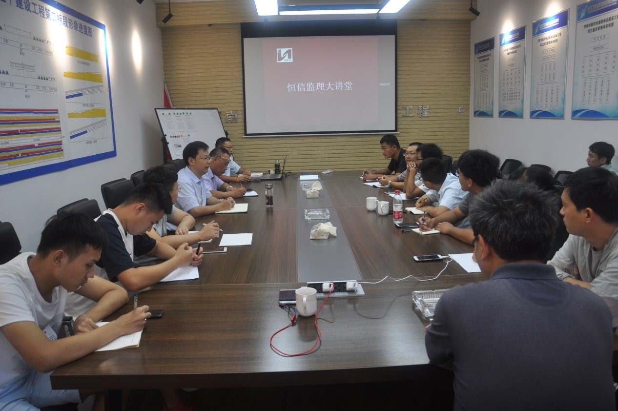 根據(jù)公司工作統(tǒng)一安排,結(jié)合“恒信監(jiān)理大講堂”的講座計(jì)劃,公司工程部會(huì)同總工辦于2019年8月17日上午在濟(jì)南市順河快速路南延項(xiàng)目監(jiān)理部舉辦“恒信監(jiān)理大講堂”,本次講座也是公司“大講堂”創(chuàng)新模式,不拘一格,靈活多樣,將“大講堂”搬到駐地項(xiàng)目監(jiān)理部,更能直接的和現(xiàn)場(chǎng)監(jiān)理人員面對(duì)面的進(jìn)行溝通和交流。